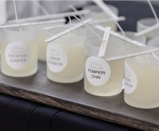 One of the evening’s highlights was our DIY candle station, where guests selected their favorite seasonal scent – lavender for spring, lemon verbena for summer, pumpkin chai for autumn, and frosted juniper for winter – and poured their own keepsake candle. It was interactive, personal, and a beautiful reminder that entertaining is as much about creating experiences as it is about the table settings themselves.